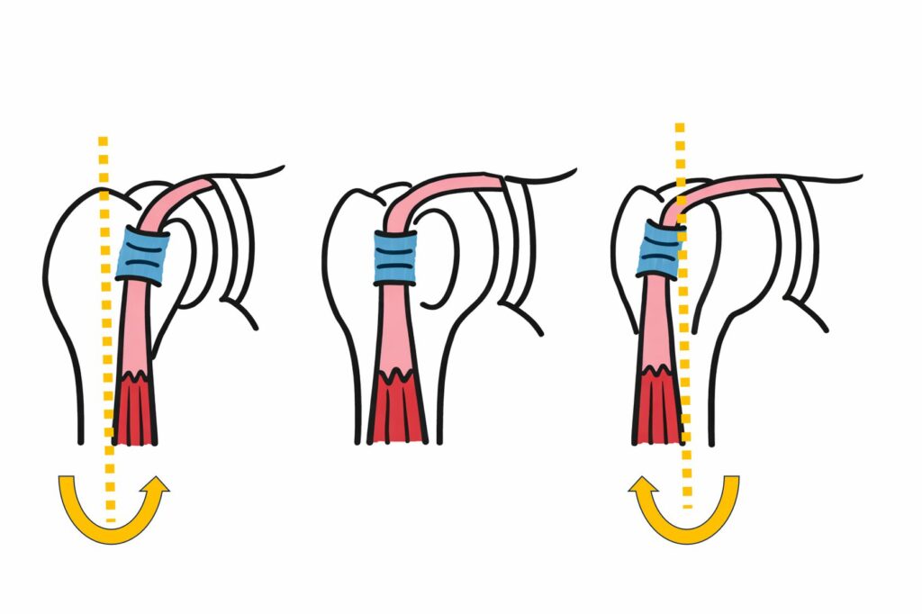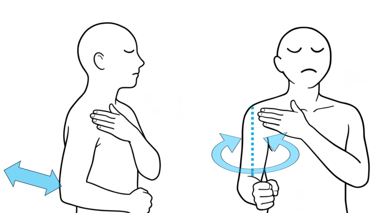 指を動かさずに肩をゆっくり内旋・外旋してみて