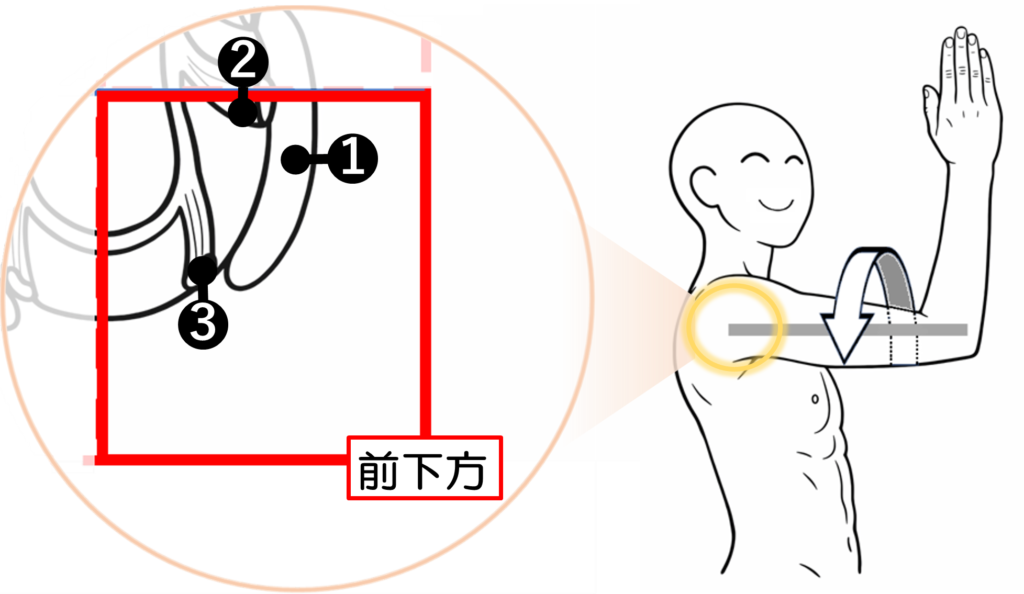 ①肩甲下筋(下部繊維)