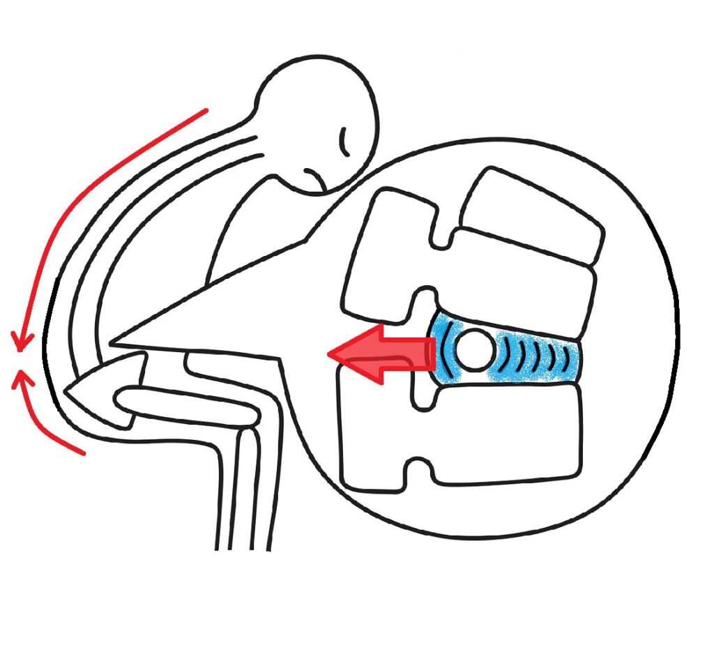 「座って前かがみ」は、椎間板を“後ろ側に押し出す力”が最大になる姿勢です。
