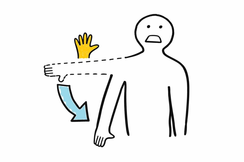 手のひらを下に向けるのは、上腕二頭筋長頭の代償を抑えるため