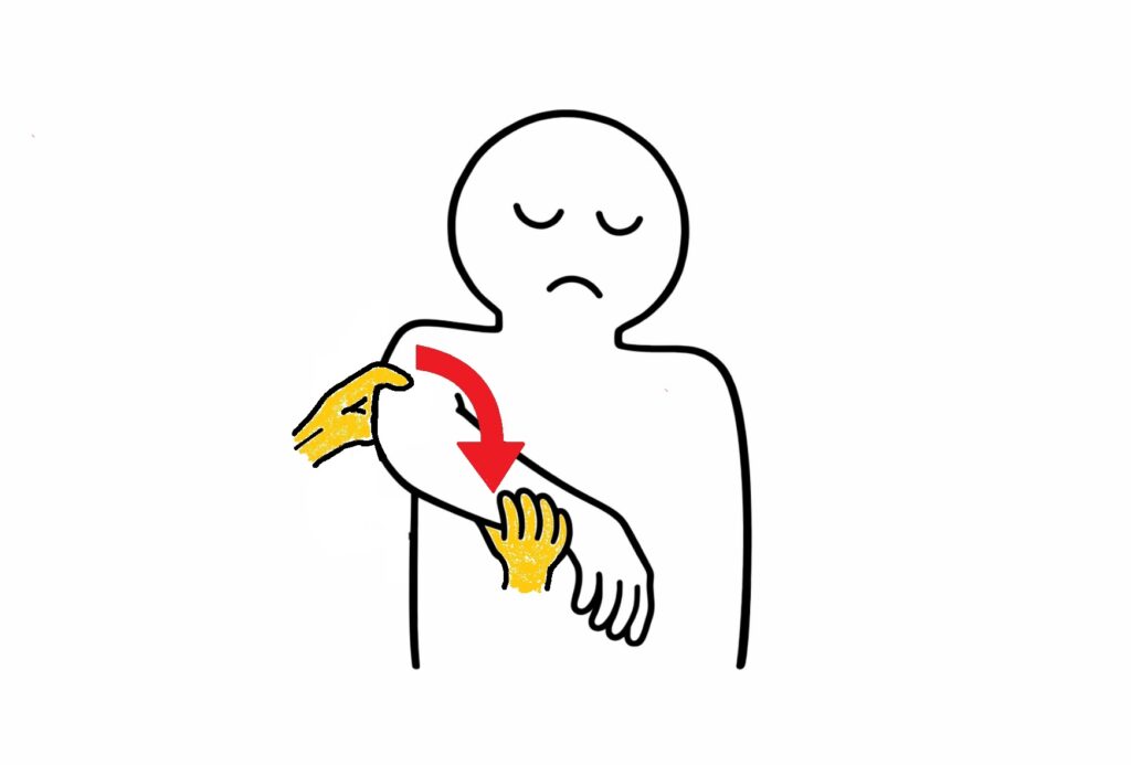 - 肩関節を内旋強制