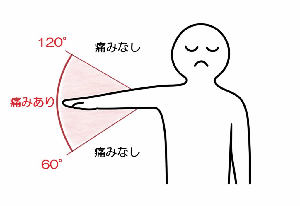 - 外転60°〜120°:痛みあり