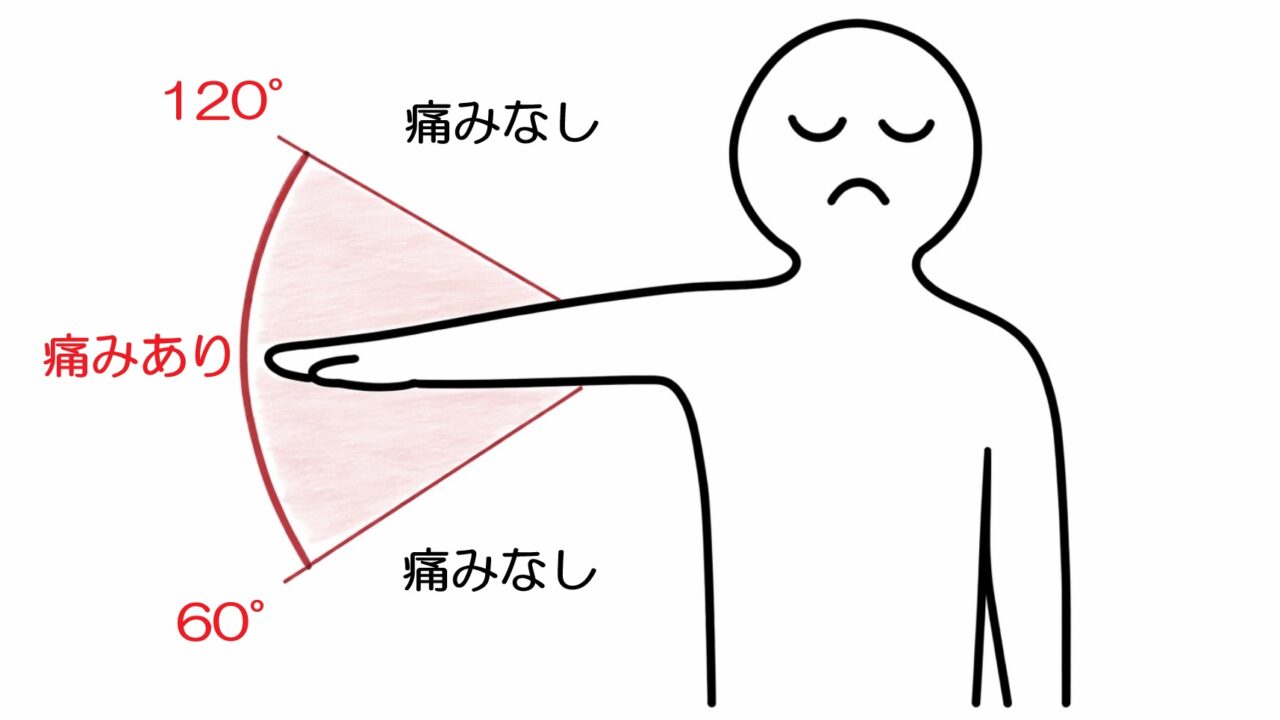 - 外転60°〜120°:痛みあり